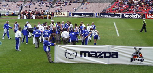 Die heimischen Kangaroos liefen ganz zu anfang durch eine riesige Flagge.
