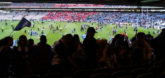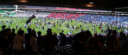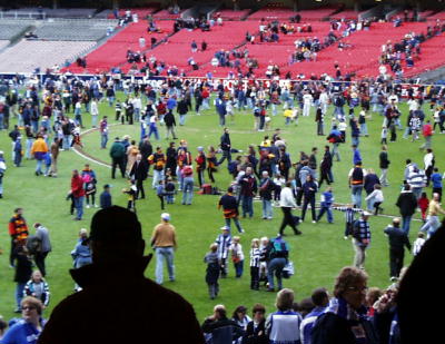 Das Spielfeld wird, wenn es noch in gutem Zustand ist, fuer die Fans freigegeben.