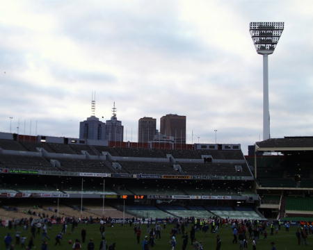 Hier sieht man sehr schoen, wie dicht das MCG an der Innenstadt