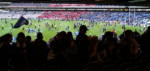 Hier sieht man, wie sich die Spielflaeche langsam mit Fans fuellt.