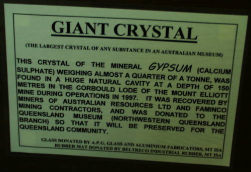 Schild, das etwas Auskunft ueber diesen Kristall gibt.