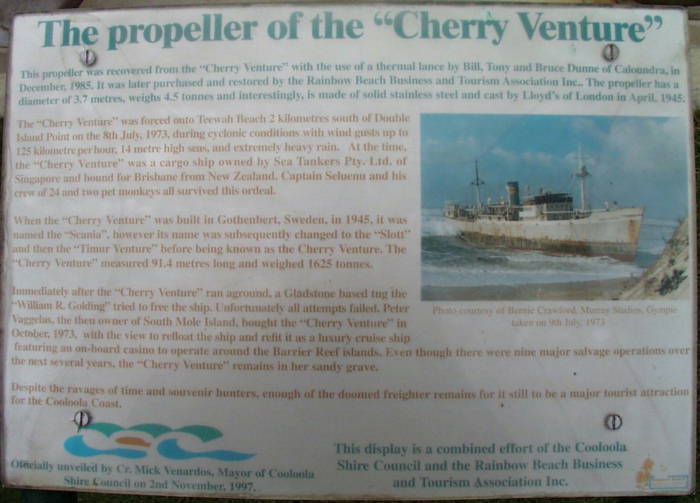 In der Naehe von Rainbow Beach ist 1973 die "Cherry Venture" gesunken.
